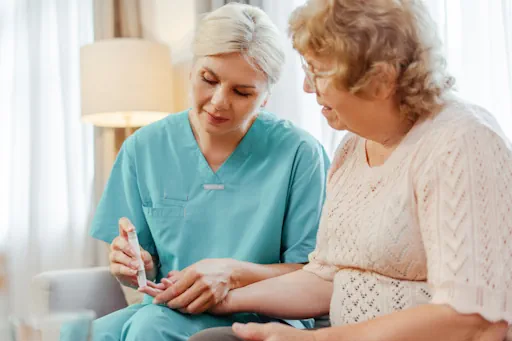 Opieka medyczna odbywa się w domu, bez konieczności dojazdów i oczekiwania w kolejkach.